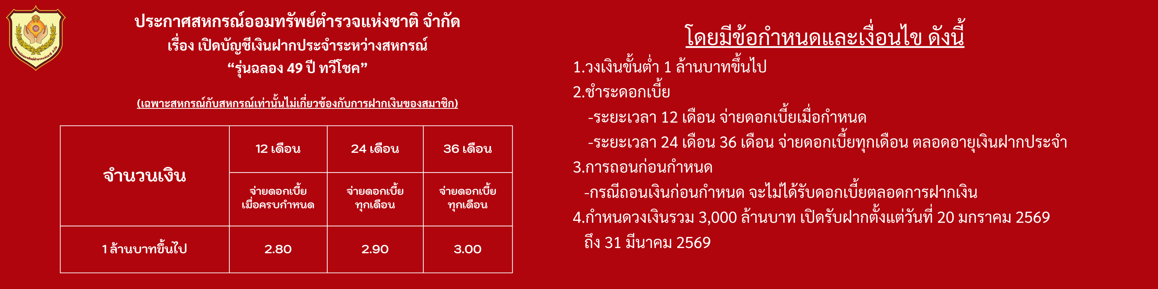 เงินกู้สามัญ ไม่เกิน95% ของทุนเรือนหุ้นหรือเงินฝาก (เฉพาะสัญญาใหม่เท่านั้น) | 5.15% |